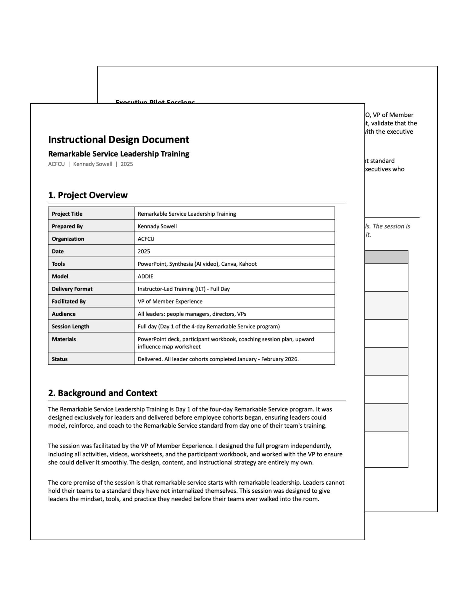 Before the program went live I ran pilot sessions with the COO, CEO, VP of Member Experience, and VP of Employee Experience to pressure-test the content and ensure it aligned with their vision for what leadership at ACFCU should look like. Getting four executives in the room to review a training before it reaches every leader in the organization is not standard practice. It signals how seriously this program was taken and how much trust was placed in the design.